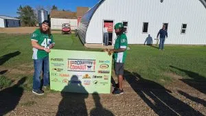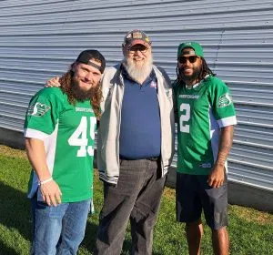 Thanks to Kevin Schultz for entertaining us with his covers and original music. We would also like to thank the Saskatchewan Roughriders for joining in the celebration, in particular, players A.J Ouellette, Mario Alford, along with Karina Peterson (Manager, Game Entertainment & Community), Kevin Clive (Sr. Sales & Partner relations Exec) and Kent Paul (Chief Financial Officer). They brought out their sense of enthusiasm along with some swag (team signed football) for our winners.