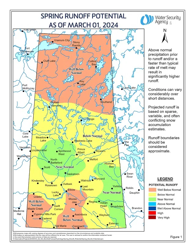 The WSA notes “a near normal runoff is expected in the Saskatoon area and west toward Biggar, as well as in the eastern portions of the grain belt along the Manitoba border.”