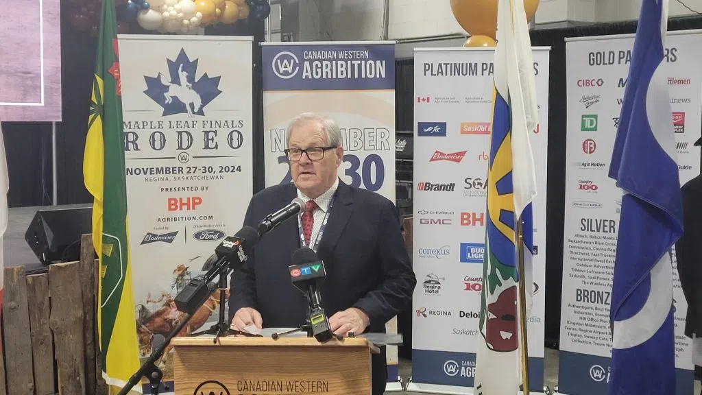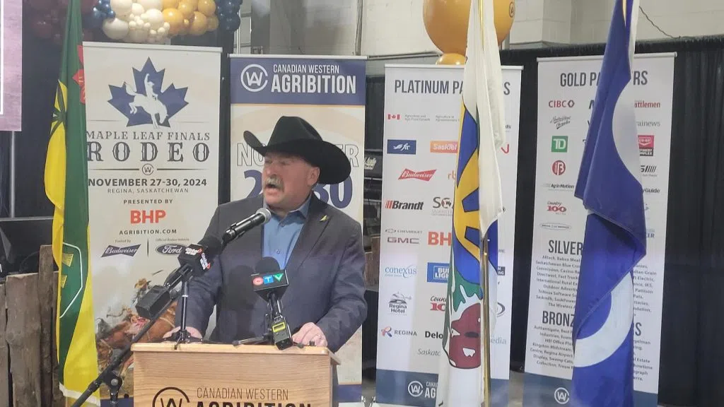 The end result of Riders Coach Corey Mace branding wood to start Agribition on Monday, November 25, 2024. | Photo: Ryan YoungMore photos from Day 1 of Canadian Western Agribition in Regina, Monday, November 25, 2024. | Photo: Ryan YoungMore photos from Day 1 of Canadian Western Agribition in Regina, Monday, November 25, 2024. | Photo: Ryan YoungMore photos from Day 1 of Canadian Western Agribition in Regina, Monday, November 25, 2024. | Photo: Ryan YoungMore photos from Day 1 of Canadian Western Agribition in Regina, Monday, November 25, 2024. | Photo: Ryan YoungMore photos from Day 1 of Canadian Western Agribition in Regina, Monday, November 25, 2024. | Photo: Ryan YoungMore photos from Day 1 of Canadian Western Agribition in Regina, Monday, November 25, 2024. | Photo: Ryan YoungMore photos from Day 1 of Canadian Western Agribition in Regina, Monday, November 25, 2024. | Photo: Ryan YoungMore photos from Day 1 of Canadian Western Agribition in Regina, Monday, November 25, 2024. | Photo: Ryan YoungCEO of Agribition Shaun Kindopp talking to reporters after the burning of the brand at Canadian Western Agribition, Monday, November 25, 2024. | Photo: Ryan YoungHead Coach of the Saskatchewan Roughriders Corey Mace speaking to the media after burning the brand to start Canadian Western Agribition. | Photo: Ryan YoungFederal Minister of Agriculture & Agri-Food Canada Lawrence MacAulay delivers opening remarks at Canadian Western Agribition on Monday, November 25, 2024. | Photo: Ryan YoungSaskatchewan Agriculture Minister Daryl Harrison provides opening remarks at Canadian Western Agribition on Monday, November 25, 2024. | Photo: Ryan YoungPresident of Canadian Western Agribition Michael Latimer addresses the crowd at Canadian Western Agribition on Monday, November 25, 2024. | Photo: Ryan Young