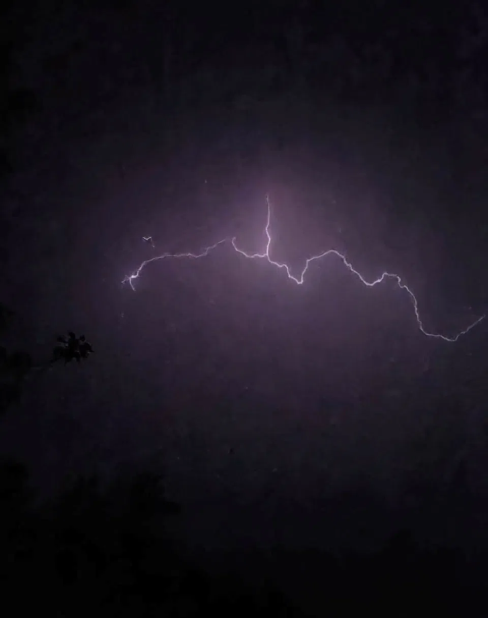 Jon Tupper Aug 21, 2025 An image of lightning generated by a passing storm that may have spawned a tornado north of Saskatoon. Photo by Jon Tupper